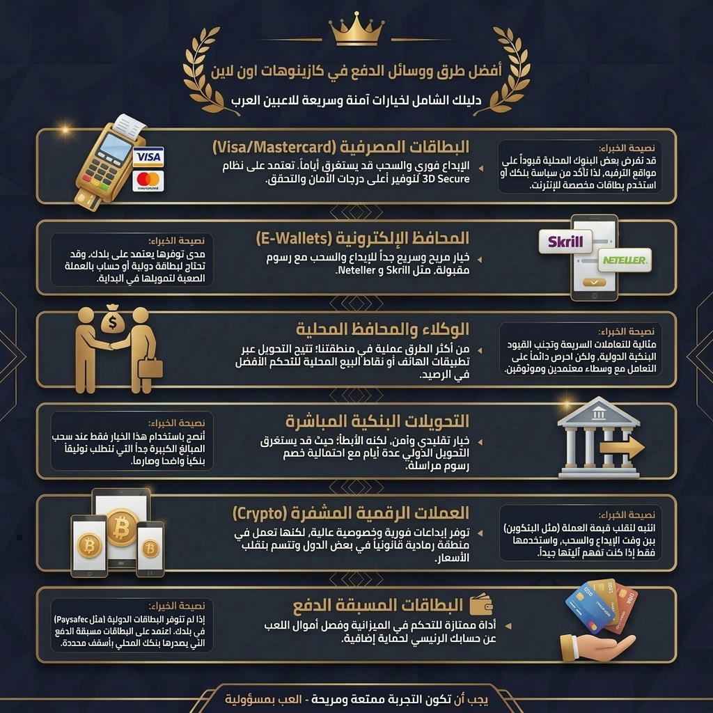 في كازينوهات الإمارات، أكثر الطرق اللي عليها عروض هي العملات الرقمية وSkrill لأن التحويل سريع وآمن.